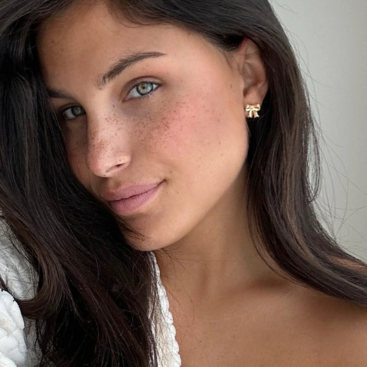 Sterling Silver Yellow Gold Plated Bow Stud Earrings