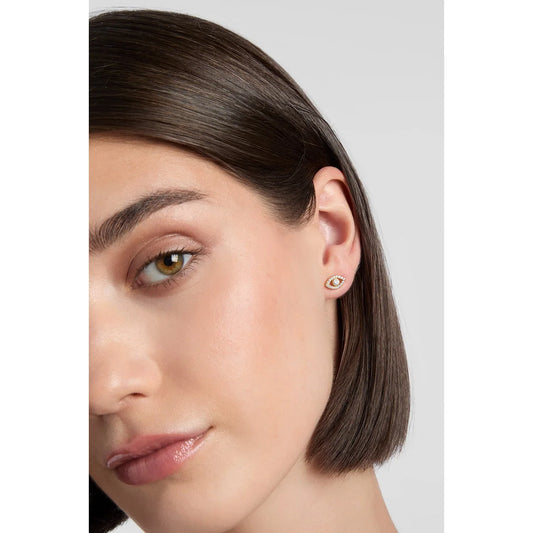 Sterling Silver Yellow Gold Plated Evil Eye CZ Stud Earrings