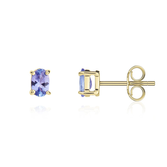 9ct Yellow Gold Oval Tanzanite Claw Stud Earrings