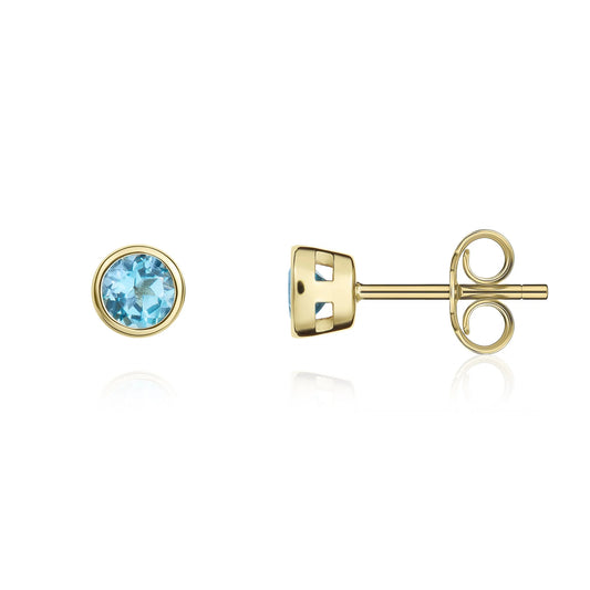 9ct Yellow Gold Round Blue Topaz Rubover Stud Earrings