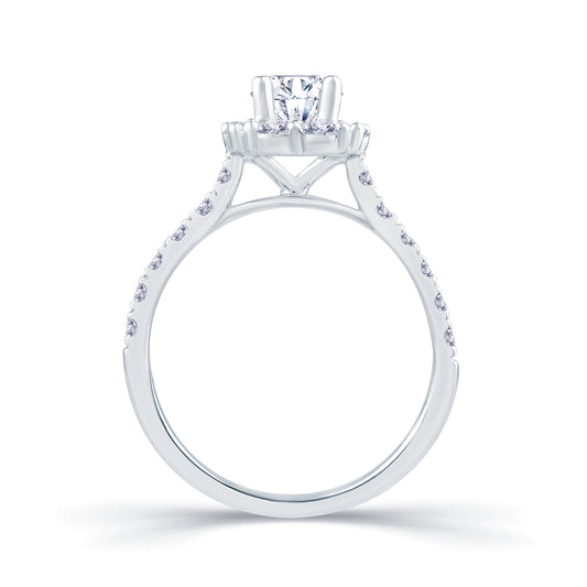 Platinum Brilliant Round & Halo Diamond Ring, 0.74ct
