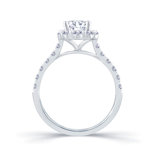 Platinum Pear & Halo Shoulder Set Diamond Ring, 1.21ct