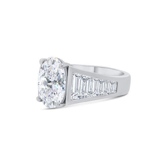 Laboratory Grown, Radiant Solitaire & Channel Shoulder Set Diamond Ring, Platinum Band, 5.58ct