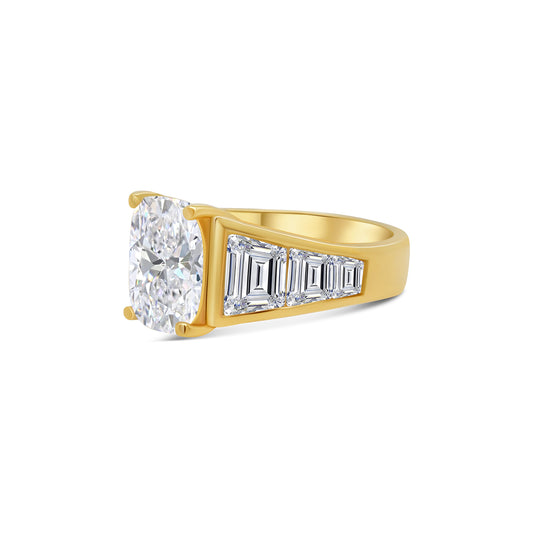Laboratory Grown, Radiant Solitaire & Channel Shoulder Set Diamond Ring, 18ct Yellow Gold, 5.53ct