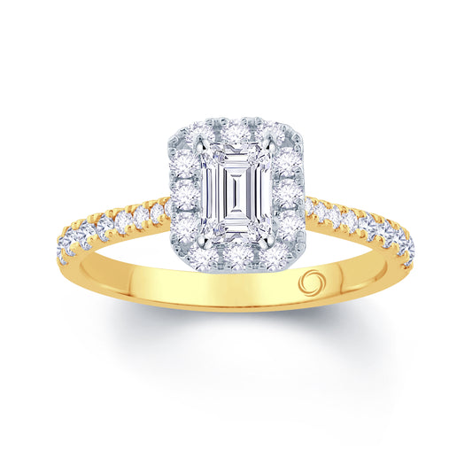 18ct Yellow Gold Emerald, Halo & Shoulder Set Diamond Ring, 0.95ct
