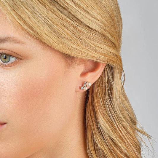Sterling Silver CZ & Pearl Climber Stud Earrings