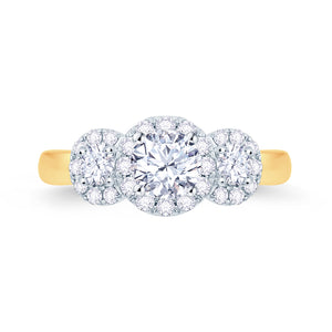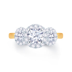 18ct Yellow Gold Round & Oval Three Stone Halo Diamond Ring 0.96ct