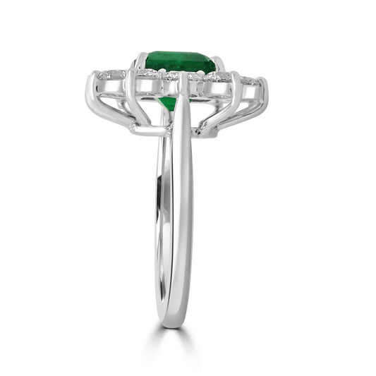 18ct White Gold Emerald Cut Emerald & Diamond Cluster Halo Ring