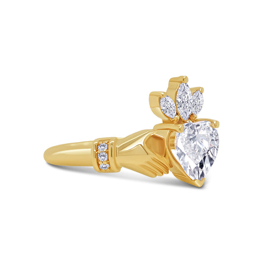 9ct Yellow Gold Pave CZ Claddagh Heart & Cuffs Ring