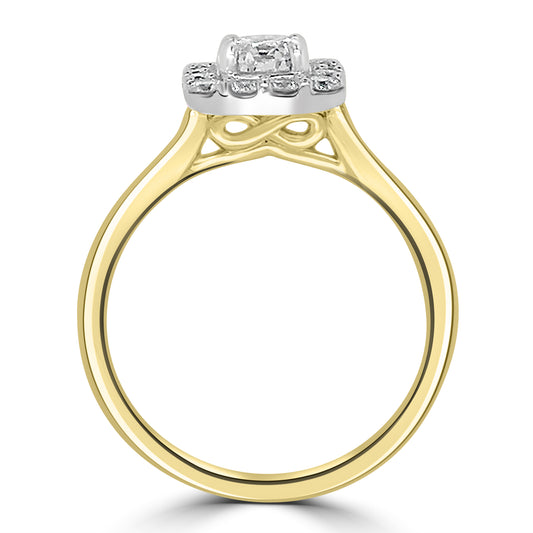 18ct Yellow Gold Brilliant Round & Cushion Halo Diamond Ring 0.74ct
