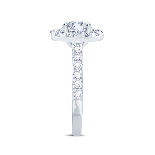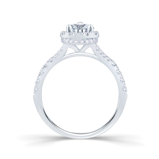 Platinum Pear, Halo & Diamond Set Split Band Diamond Ring 0.95ct
