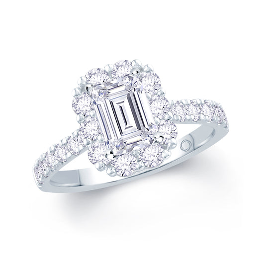Platinum Emerald, Halo & Shoulder Set Diamond Ring 1.15ct