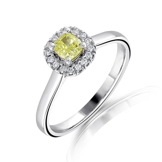 Platinum Yellow Cushion Diamond Halo Ring 0.52ct