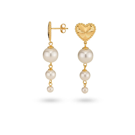 Sterling Silver Yellow Gold Plated Heart & Pearl Drop Earrings