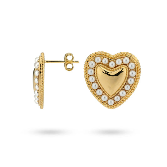 Sterling Silver Yellow Gold Plated Heart & Pearl Stud Earrings