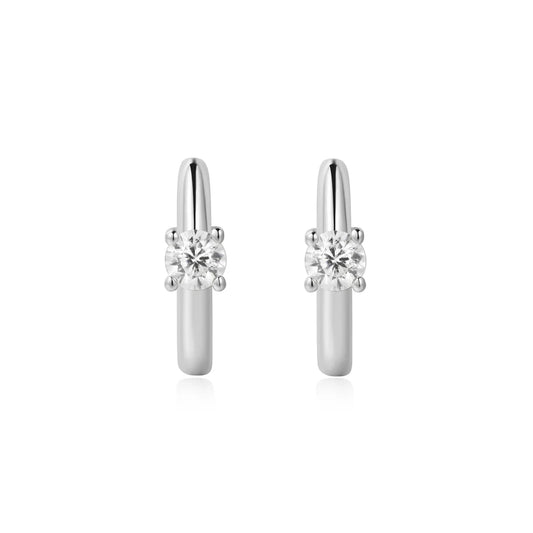 Ania Haie Rhodium Plated Silver CZ Solitaire Mini Huggie Hoop Earrings