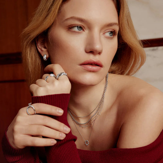 Ania Haie Rhodium Plated Silver Interlocked Pearl & CZ Oval Hoop's