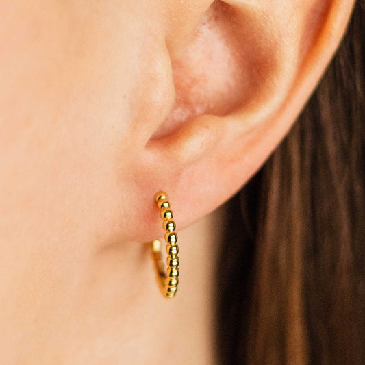 Sterling Silver Yellow Gold Plated 18mm Beaded Hoop Earrings