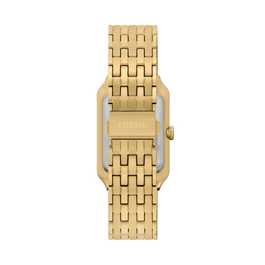 Fossil Ladies 26mm Raquel Three-Hand Date Gold Tone Mother of Pearl Dial Stainless Steel Watch