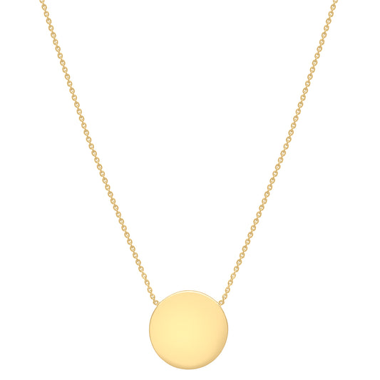 Sterling Silver Yellow Gold Plated 15mm Disc Pendant Adjustable Necklace