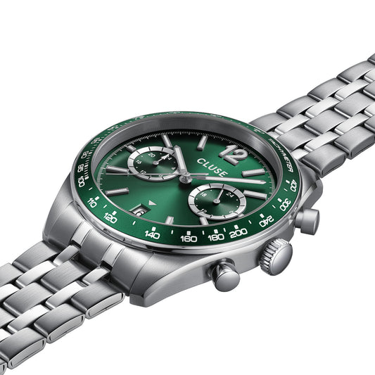 Cluse 41.5mm Aravis Green Duel Time Date Window Steel Link Watch