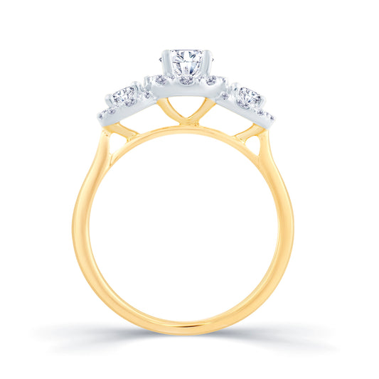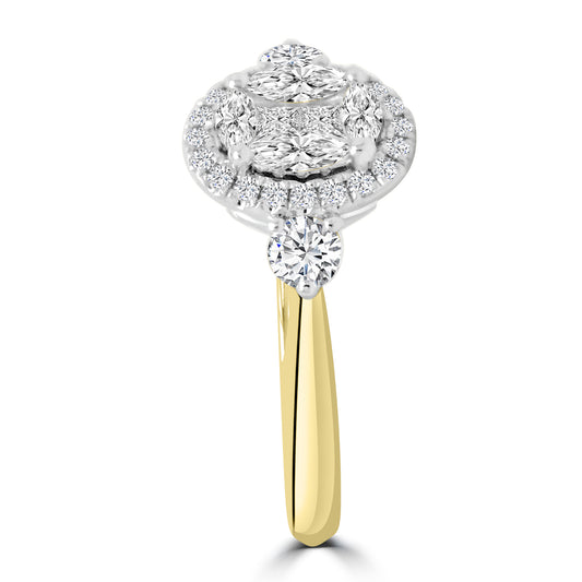 18ct Yellow Gold Oval, Halo & Three-Stone Illusion Diamond Ring, 0.75ct