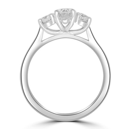Platinum Oval & Round Three Stone Diamond Ring, 1.05ct