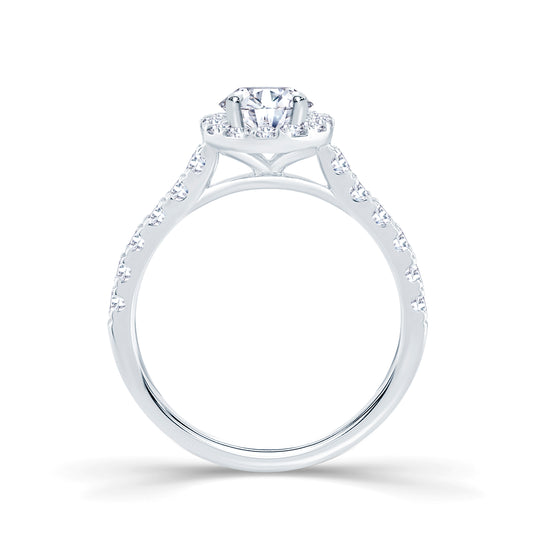 Platinum Oval & Halo Diamond Ring, 0.76ct