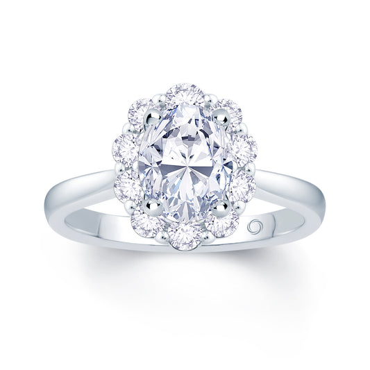 Platinum Oval & Halo Diamond Set Band Ring, 0.85ct