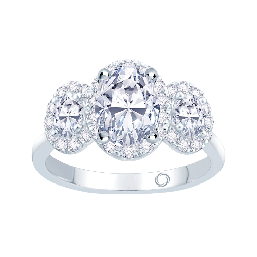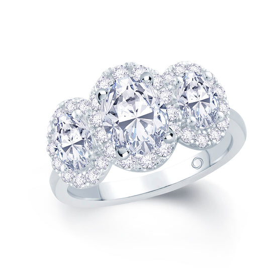 Platinum Oval & Halo Three Stone Diamond Ring, 1.04ct