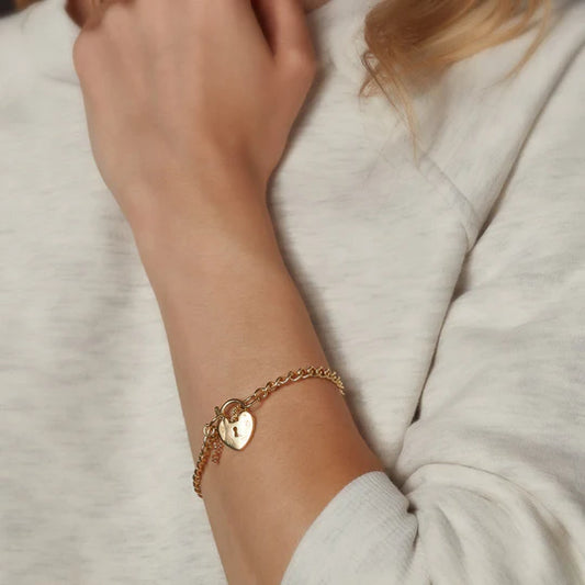 Sterling Silver Yellow Gold Plated Heart Padlock Curb Bracelet