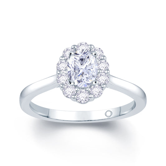 Platinum Oval & Halo Diamond Ring, 0.76ct