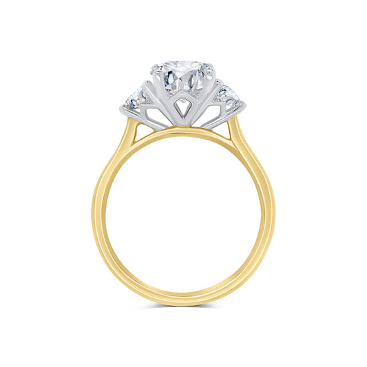 Laboratory Grown, Oval & Round Three Stone, 18ct Yellow Gold Diamond Ring, 2.92ct