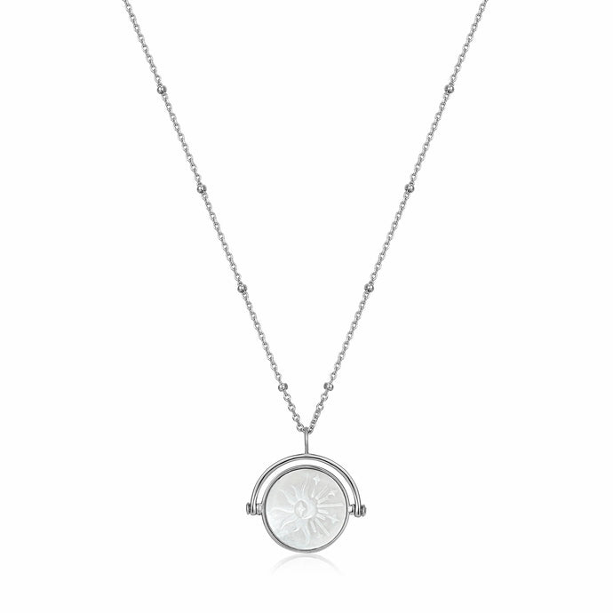 Ania Haie Rhodium Plated Silver Mother of Pearl Sun Necklace