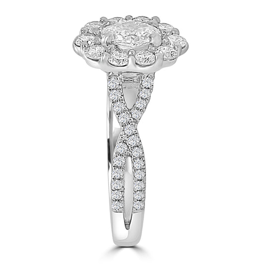 Platinum Brilliant Oval & Halo, Shoulder Set Twist Infinity Diamond Ring, 1.00ct