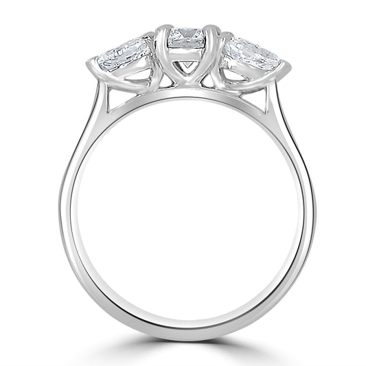 Platinum Brilliant Round & Pear Talon Claw Three Stone Diamond Ring, 1.50ct