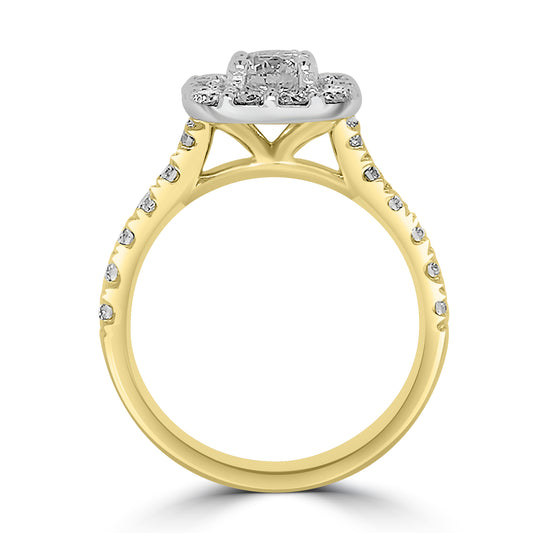 18ct Yellow Gold Brilliant Round, Cushion Halo & Shoulder Set Diamond Ring, 1.09ct