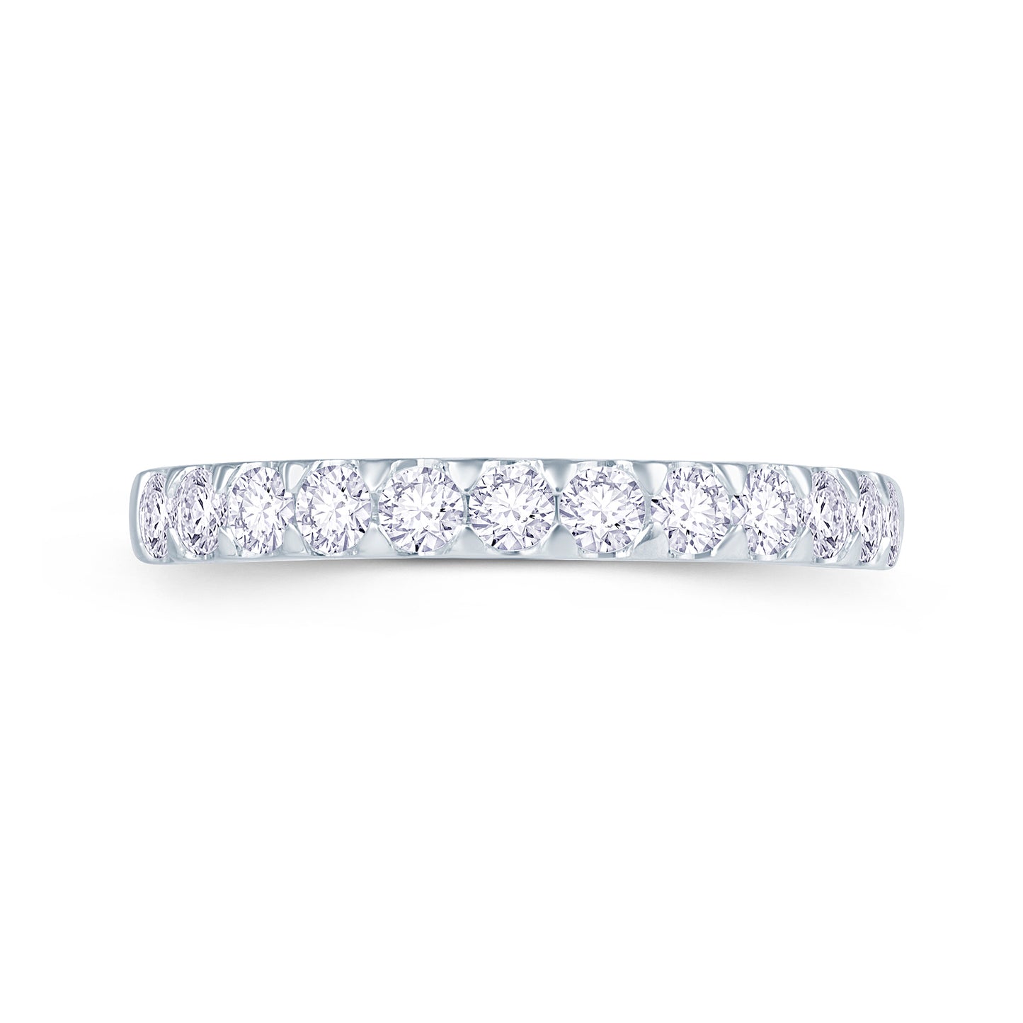 This exquisite diamond wedding band is triangle claw set, allowing each diamond to have a surrounding claw. This band is holding 0.50ct of brilliant cut diamonds with a 50% spread in a 2.5mm wide hallmarked 750 white gold band.