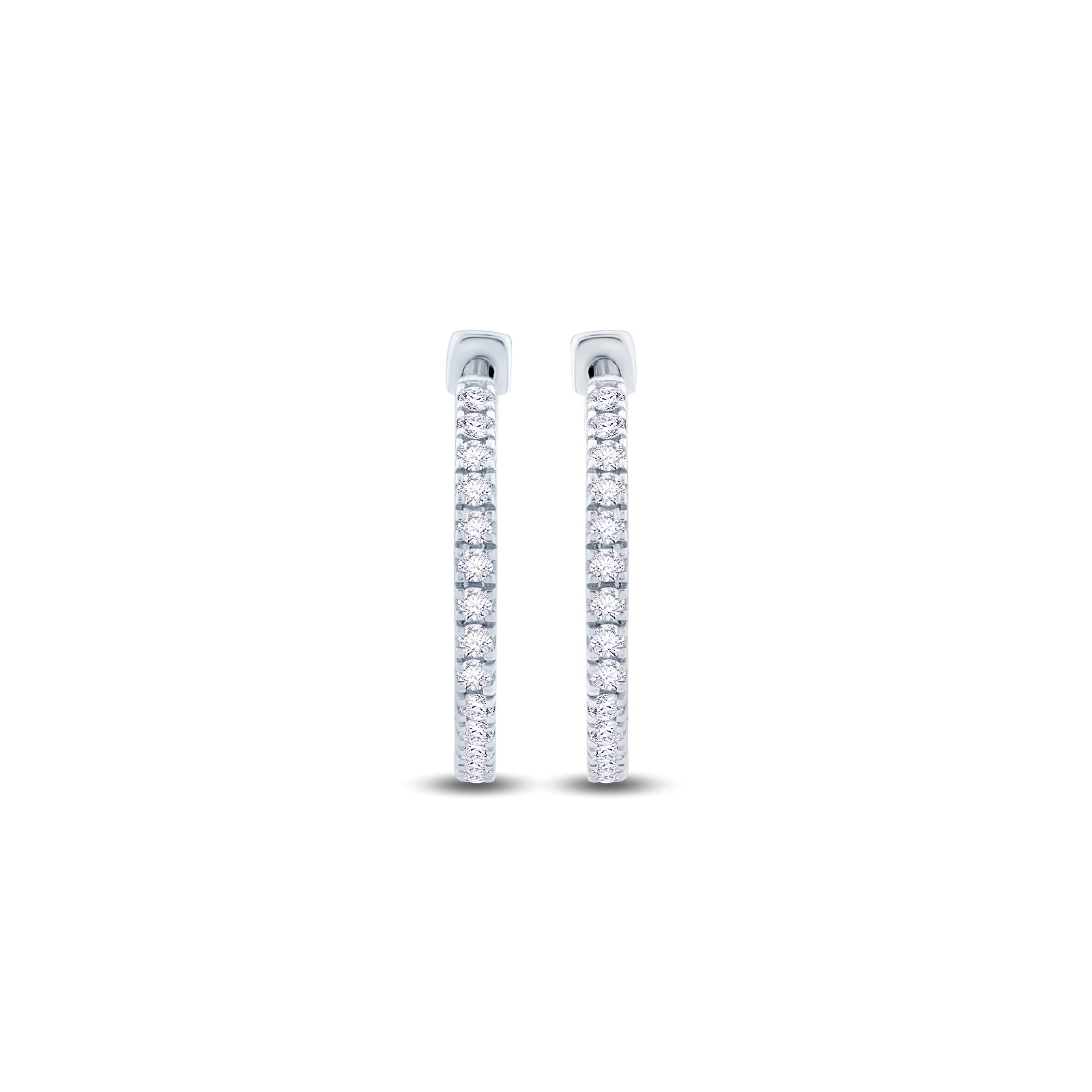 9ct White Gold Secure Diamond Hoop Earrings, 0.65ct