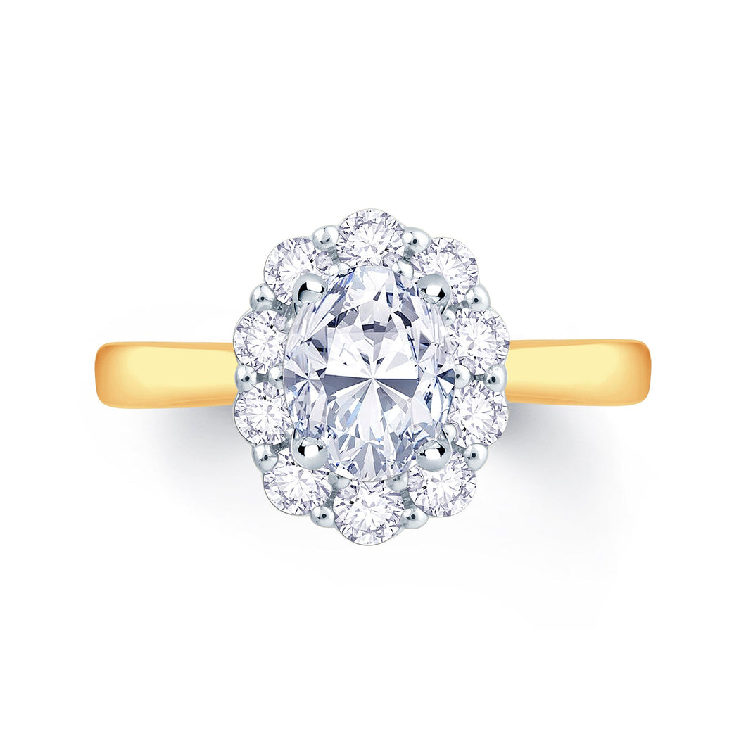 18ct Yellow Gold Oval & Halo Diamond Ring, 0.86ct