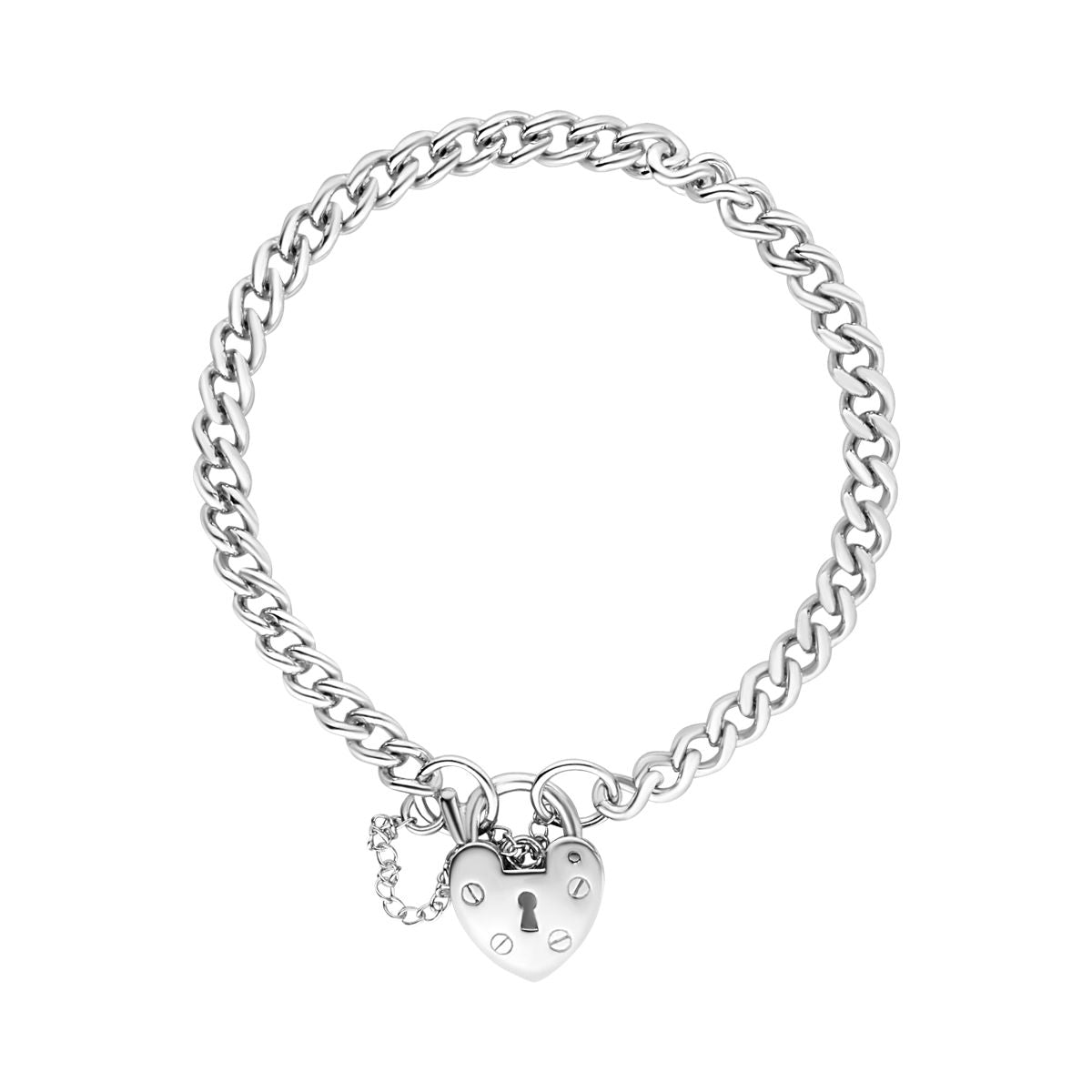 Crafted in 925 sterling silver, a meaningful piece that adds bold design to all outfits. Featuring a bold curb chain design that features a heart shaped padlock. These secure locks have become a symbol of everlasting love, making it the perfect gift for the one you love.