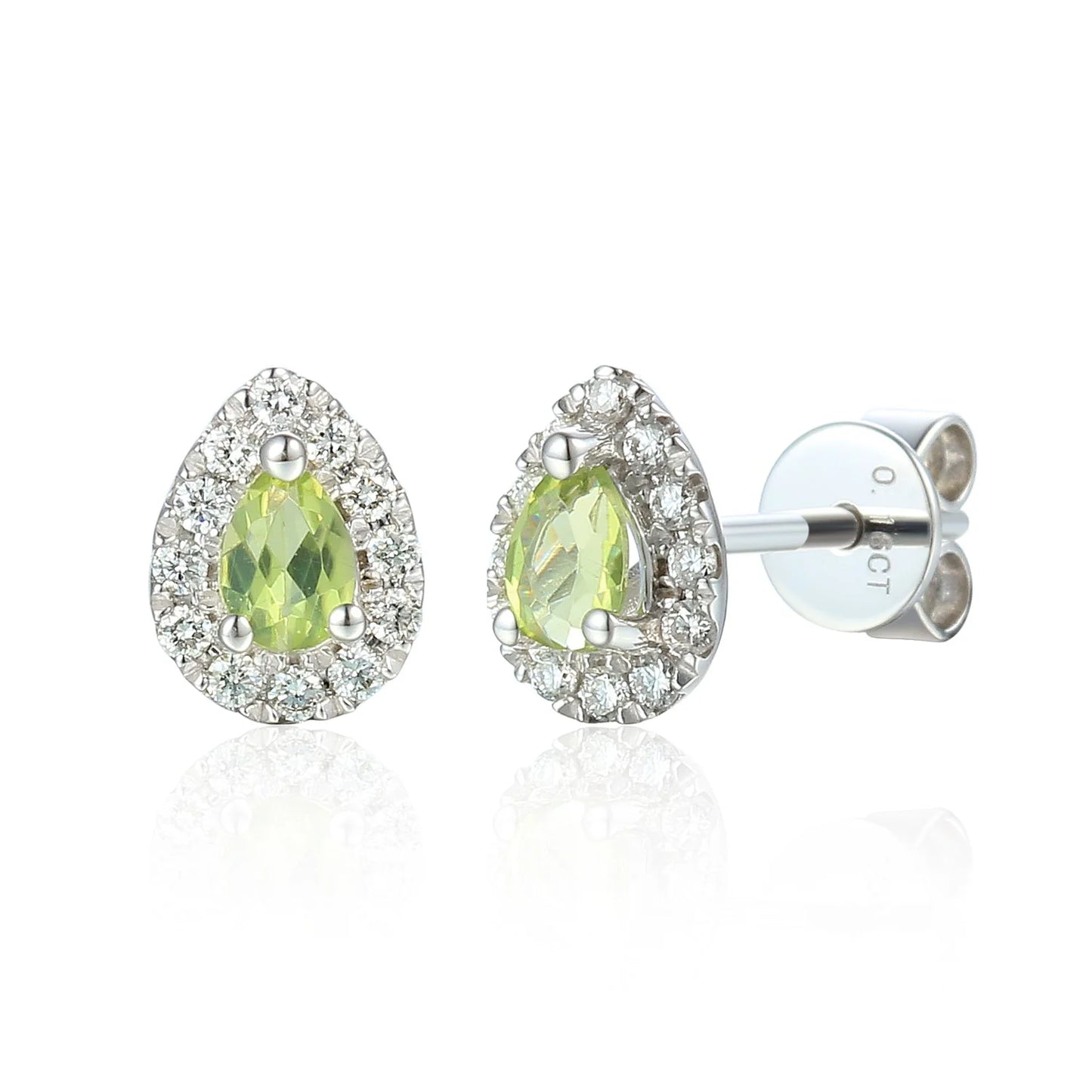 9ct White Gold Pear Peridot & Diamond Halo Stud Earrings