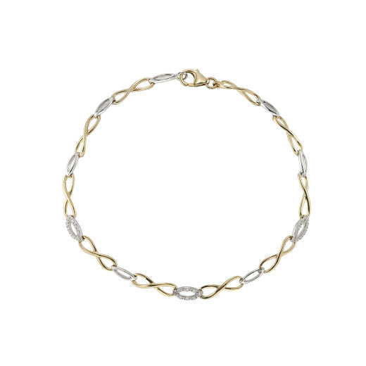 9ct Yellow and White Gold Diamond Infinity Bracelet