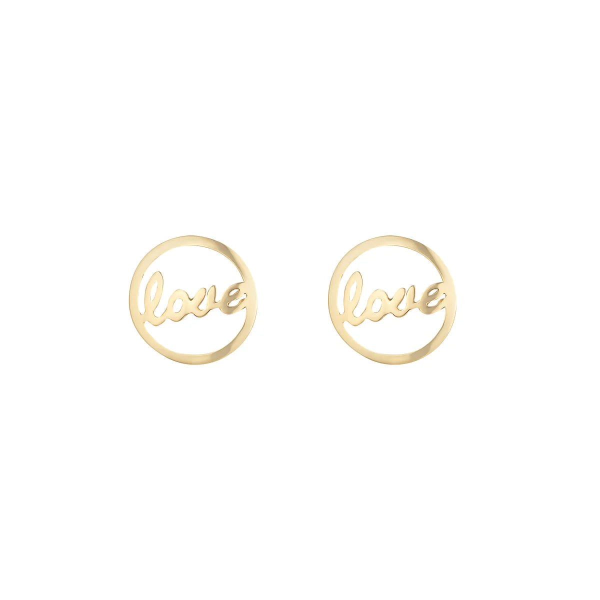 9ct Yellow Gold 9mm Love Round Stud Earrings