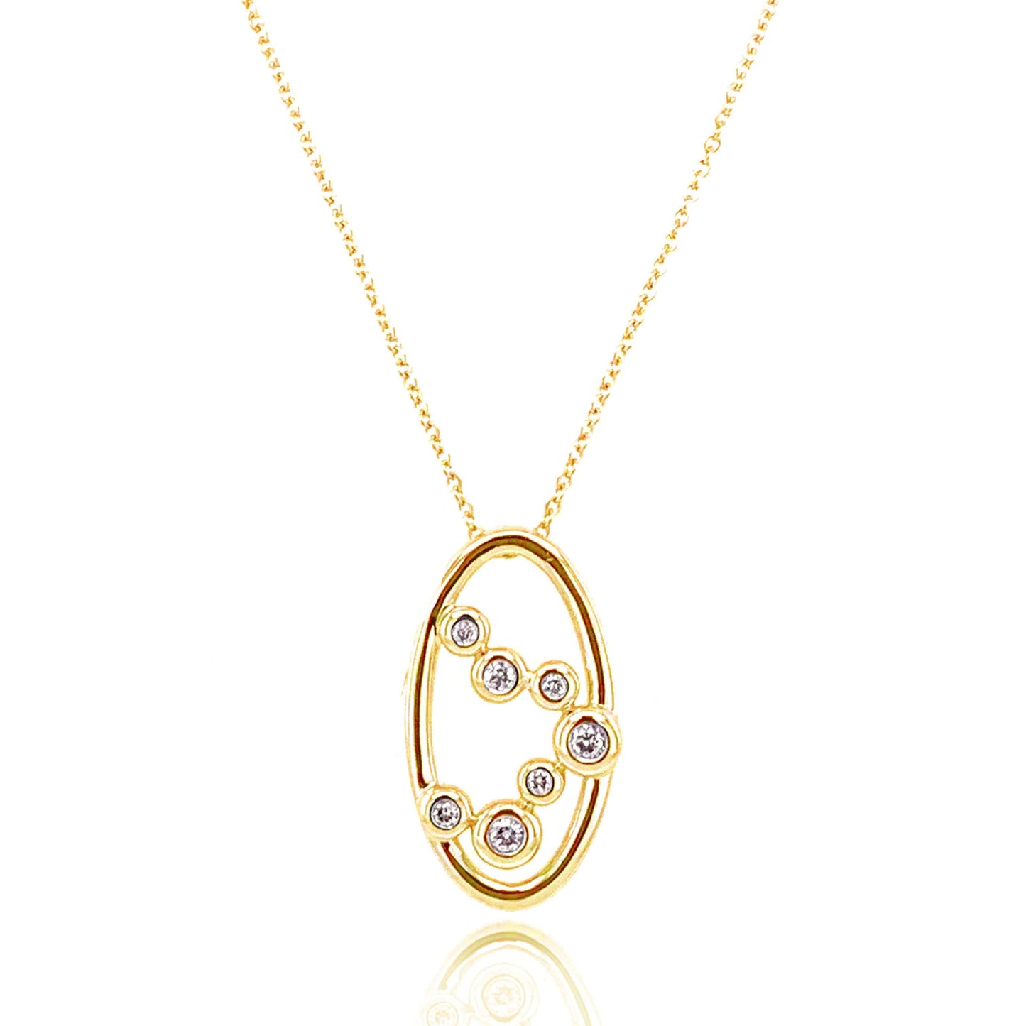 This 9ct yellow gold pendant neckpiece is studded with stunning diamonds, infusing a splash of elegance into this gorgeous accessory. Inspired by the women of the new age, this creation represents contemporary style in all its glory. This elegant piece possesses an irresistible timeless appeal.
