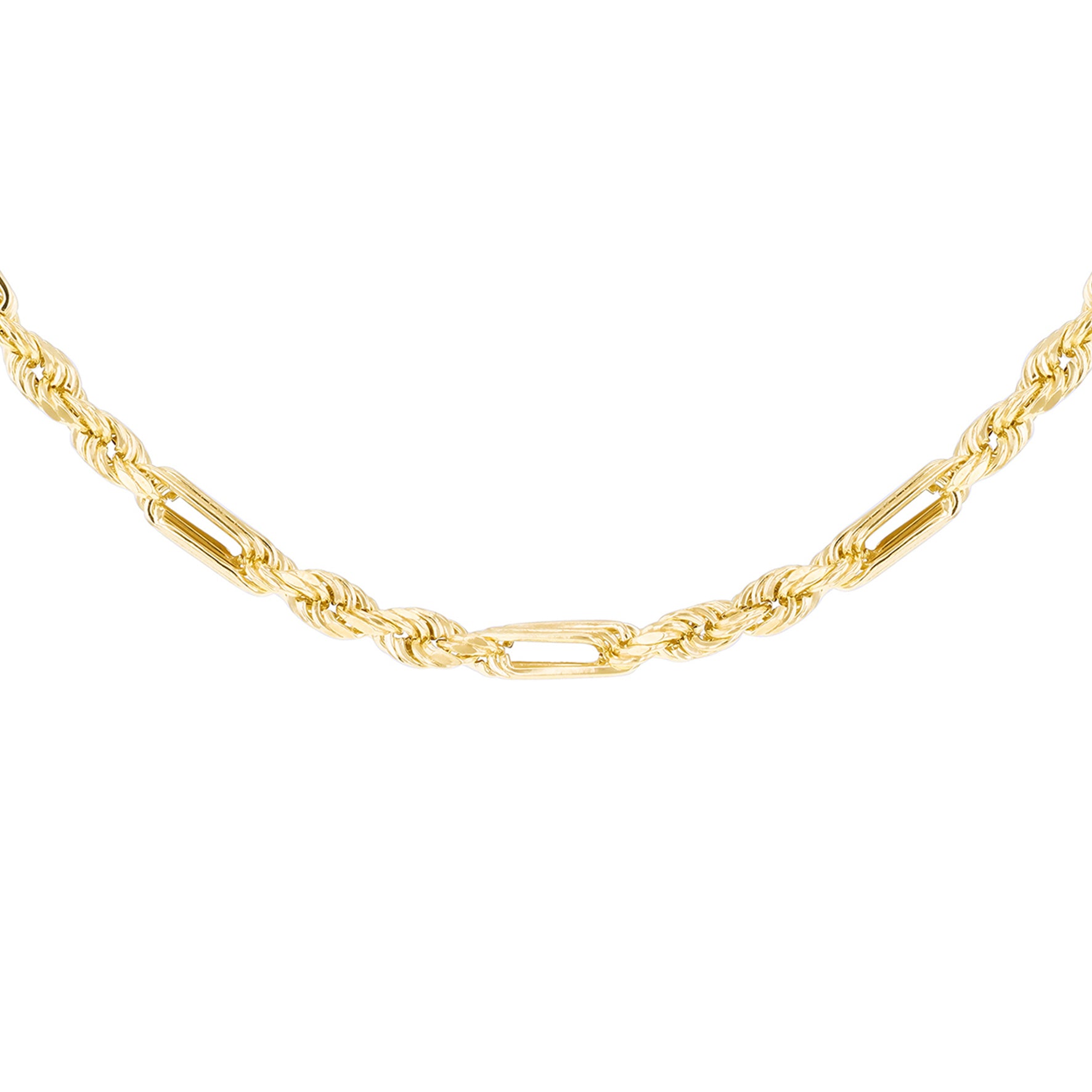 Crafted in 9ct yellow gold, this stunning diamond cut figaro chain eludes a bold and distinctive design, yet still versatile to pairing with other jewellery. This necklace features polished oval links in between a diamond cut rope chain, creating a modern take on timeless design. Perfect for any occasion.