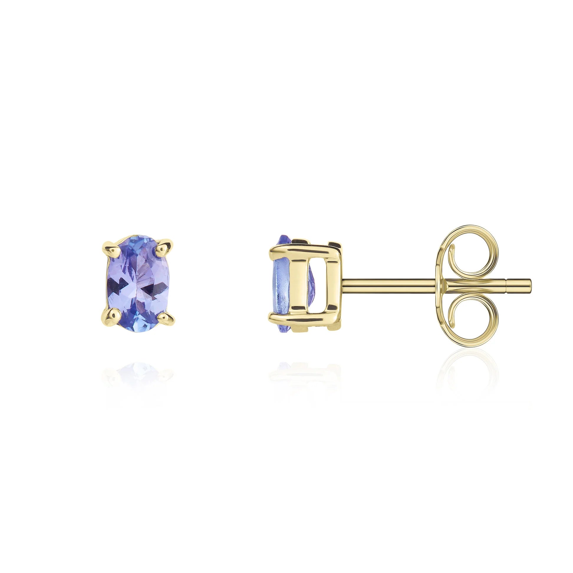 9ct Yellow Gold Oval Tanzanite Claw Stud Earrings