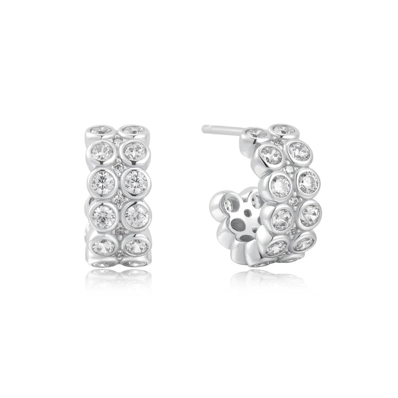 Ania Haie Sterling Silver Double Row CZ Bezel Set Stud Huggies