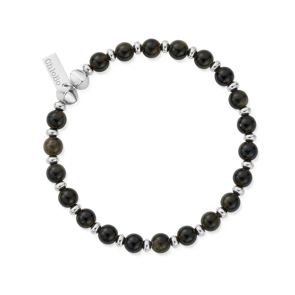 ChloBo MAN Sterling Silver Slim Obsidian Bracelet