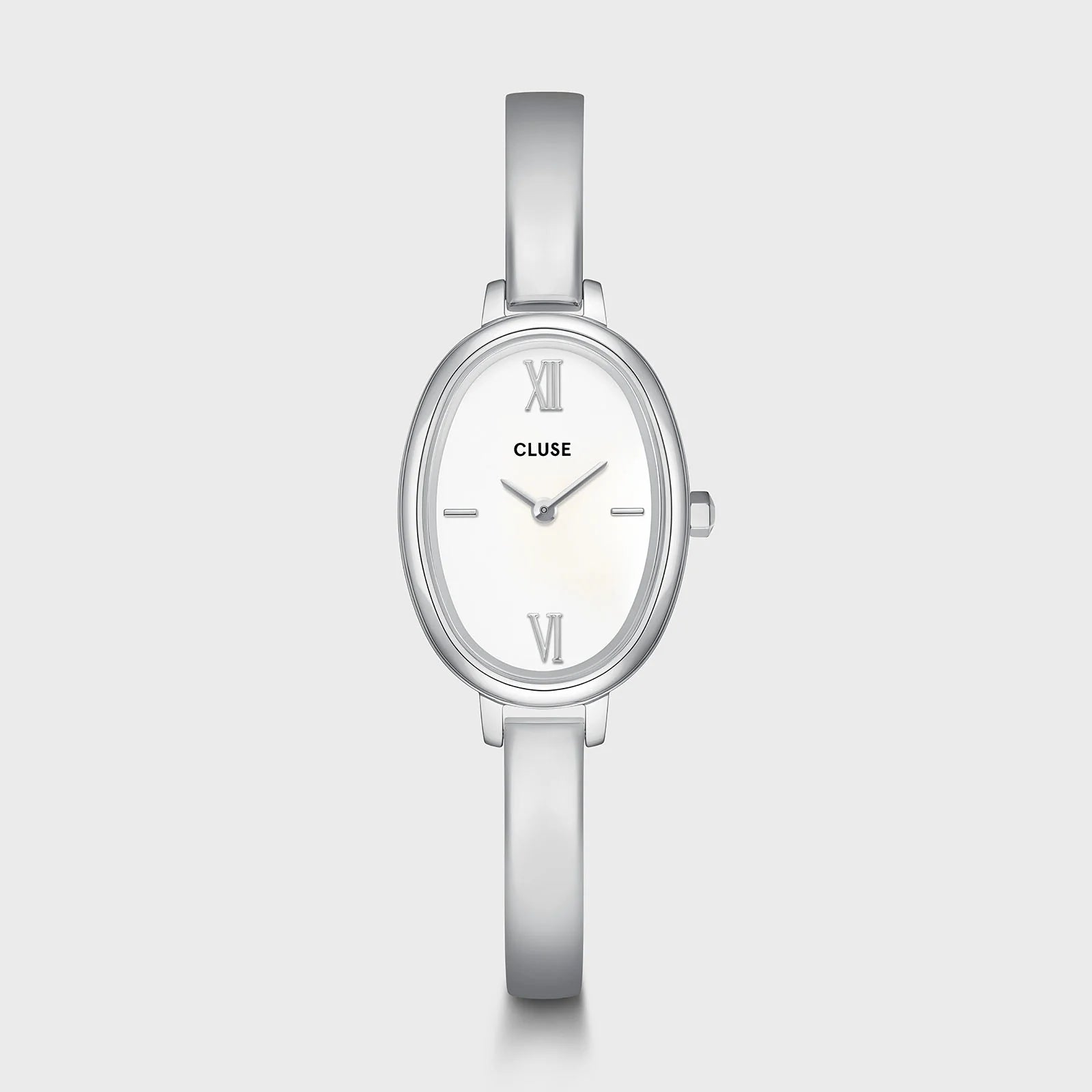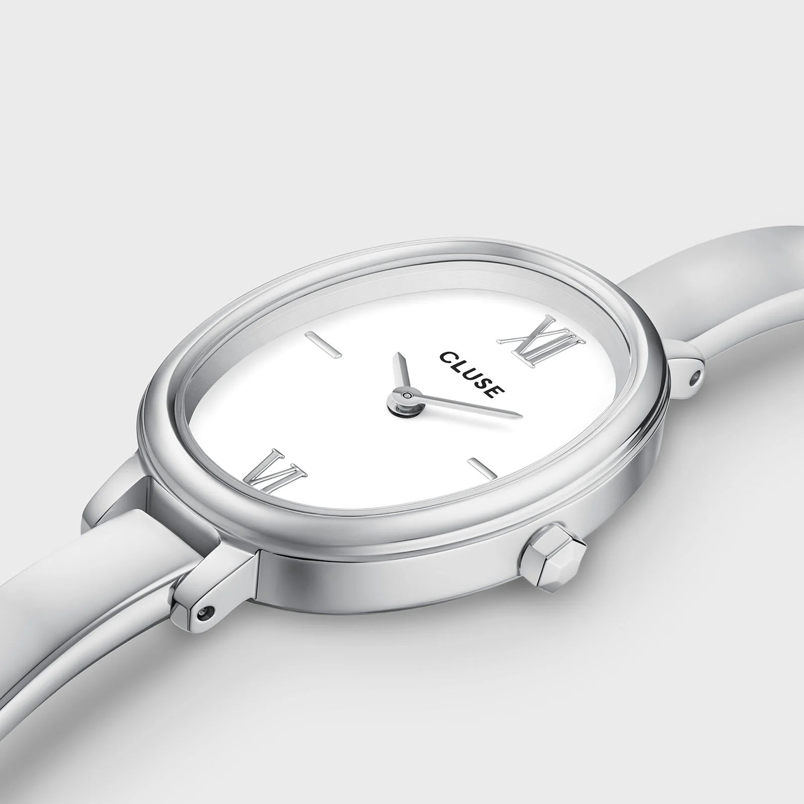 Cluse 22mm L'Ovale White Dial Silver Bracelet Watch